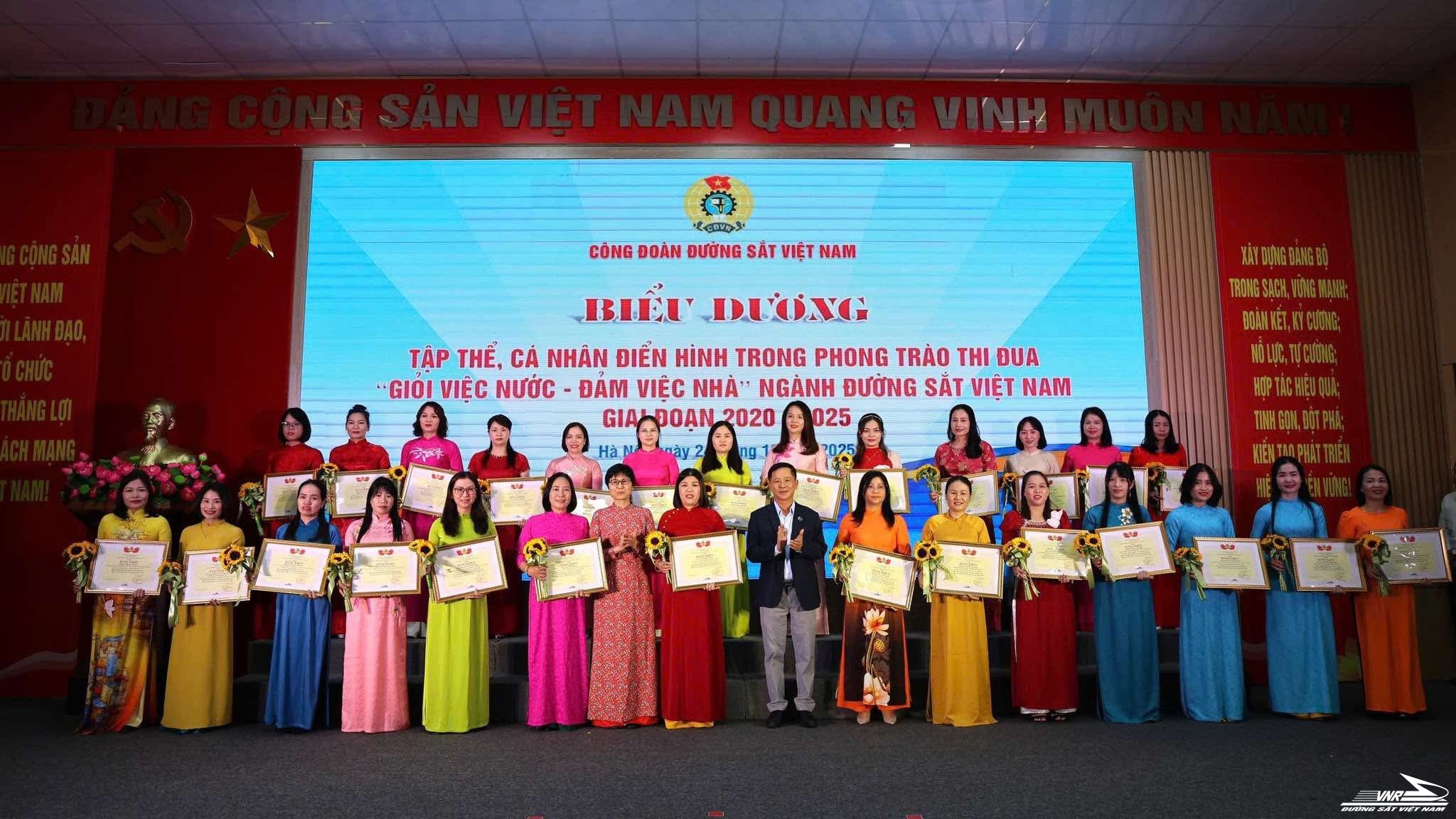 Trước đó, tại Hội trường Công ty CP Xe lửa Gia Lâm, Hội nghị biểu dương các tập thể, cá nhân điển hình trong phong trào thi đua “Giỏi việc nước – Đảm việc nhà” giai đoạn 2020-2025 diễn ra trong không khí trang trọng và xúc động. 24 tập thể và 80 nữ cán bộ, người lao động tiêu biểu được tôn vinh – những bông hoa đẹp nhất trong “vườn hoa thi đua” của ngành Đường sắt Việt Nam. Họ là minh chứng sống động cho hình ảnh người phụ nữ Việt Nam thời đại mới: “Giỏi việc nước, đảm việc nhà”, tận tụy, bản lĩnh, sáng tạo và đầy nhân ái.