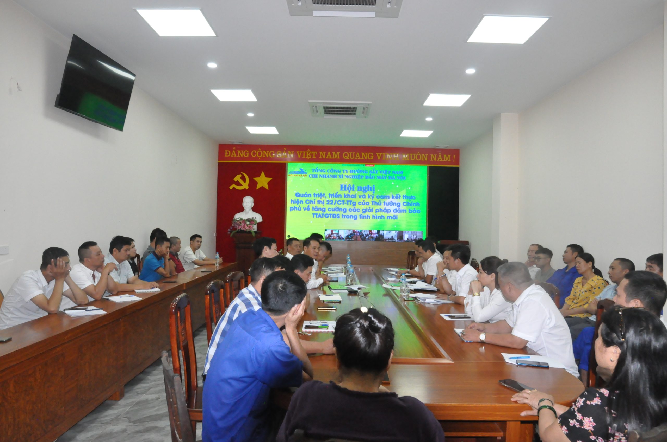 Chiều ngày 19/9/2025, Xí nghiệp đầu máy Hà Nội tổ chức Hội nghị quán triệt, triển khai và thực hiện ký cam kết thực hiện Chỉ thị số 22 của Thủ tướng Chính phủ đối với Khối vận tải. Hội nghị tổ chức trực tuyến tại các điểm cầu trong toàn Xí nghiệp.