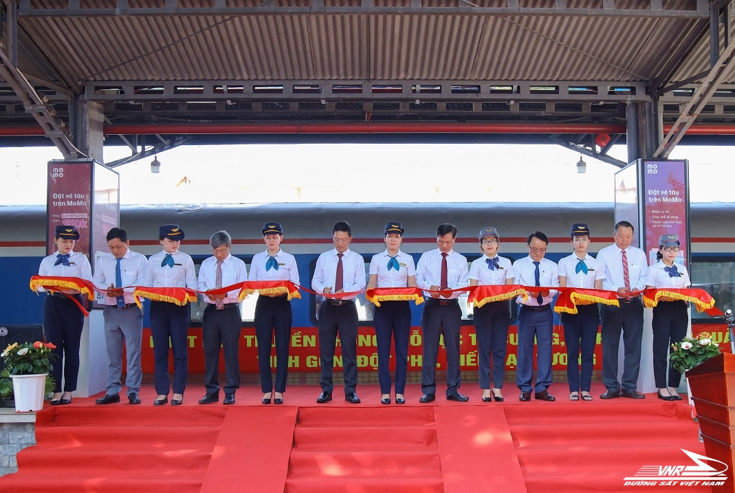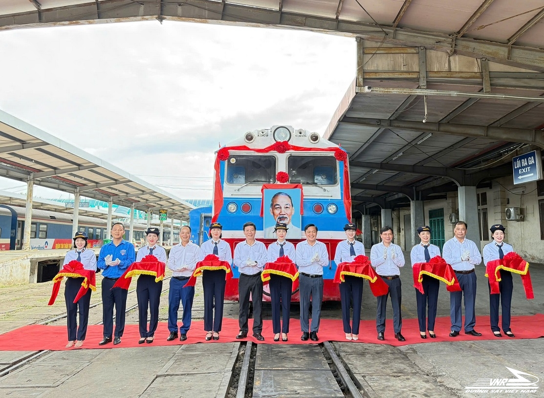 Cắt băng khai trương Đoàn tàu tuyên truyền chào mừng Đại hội Đại biểu Đảng bộ Tổng công ty ĐSVN lần thứ XIII tại ga Hà Nội
