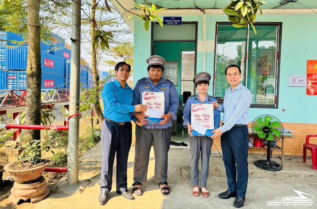 Đoàn công tác của Tổng công ty đã đến thăm hỏi, tặng quà và chúc Tết các đơn vị đường sắt tại khu vực Dầu Giây. Những phần quà thiết thực và sự quan tâm kịp thời của lãnh đạo ngành là nguồn động viên lớn, giúp CBCNV an tâm công tác, hoàn thành tốt nhiệm vụ vận chuyển hành khách, hàng hóa an toàn tuyệt đối trong những ngày Tết cận kề.