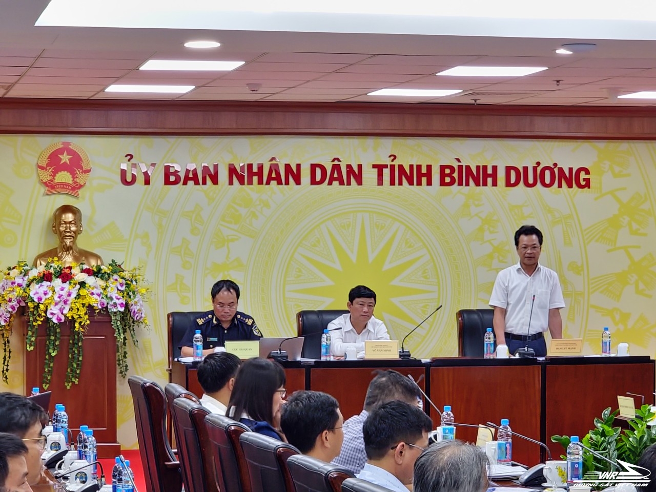 Phát biểu tại buổi làm việc, ông Võ Văn Minh – Phó Bí thư Tỉnh ủy, Chủ tịch UBND tỉnh ghi nhận những đề xuất của Tổng Công ty đường sắt Việt Nam. Ông yêu cầu Cục Hải quan, Sở Tài nguyên và Môi trường, Sở Giao thông vận tải sớm hoàn thiện các yêu cầu về mặt bằng và an ninh, triển khai làm thủ tục xuất, nhập khẩu tại Ga để giảm thời gian và chi phí vận chuyển hàng hóa cho doanh nghiệp. Bình Dương sẽ luôn tạo điều kiện để Tổng Công ty đường sắt Việt Nam giải phóng mặt bằng, tập trung đầu tư cải tạo, năng cao năng lực thông quan, hệ thống kho bãi,… khai thác hiệu quả và phát triển Ga liên vận quốc tế Sóng Thần thành trung tâm logistics của tỉnh và cả vùng Đông Nam bộ.