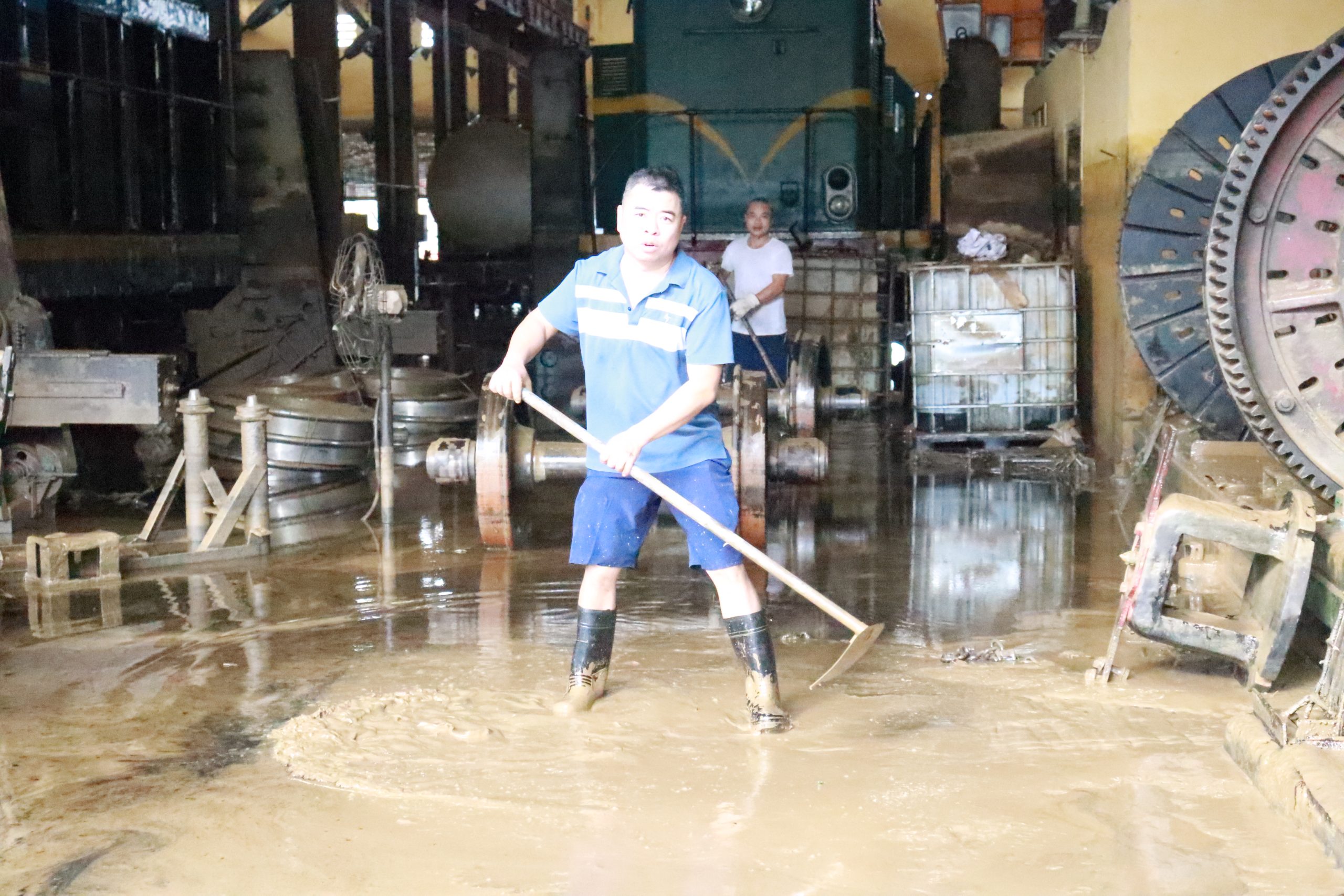 Kiểm tra công tác khắc phụ hậu quả sau lũ lụt, Ông Nguyễn Ngọc Thắng – BTĐU, GĐXN động viên, thăm hỏi người lao động PX ĐM 3 đang tập trung khắc phục hậu quả hoàn lưu sau bão.