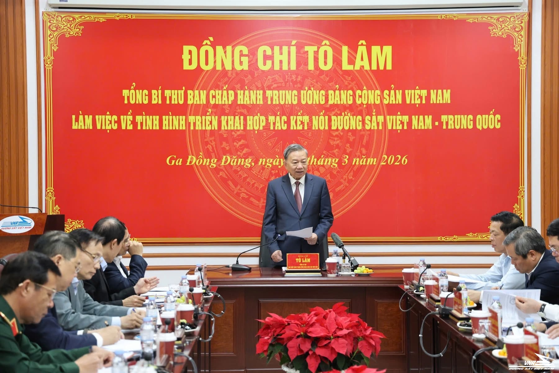 Sáng 19/3, tại ga Đồng Đăng, Tổng Bí thư Tô Lâm làm việc về tiến độ hợp tác đường sắt giữa Việt Nam và Trung Quốc. Dự buổi làm việc có Thủ tướng Phạm Minh Chính cùng lãnh đạo nhiều ban, bộ, ngành Trung ương, địa phương.